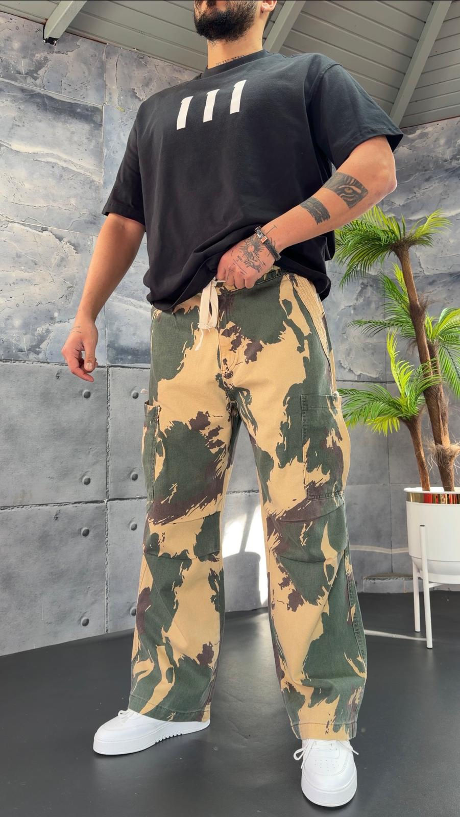 Beli Lastikli Kamuflaj Baggy Pantolon