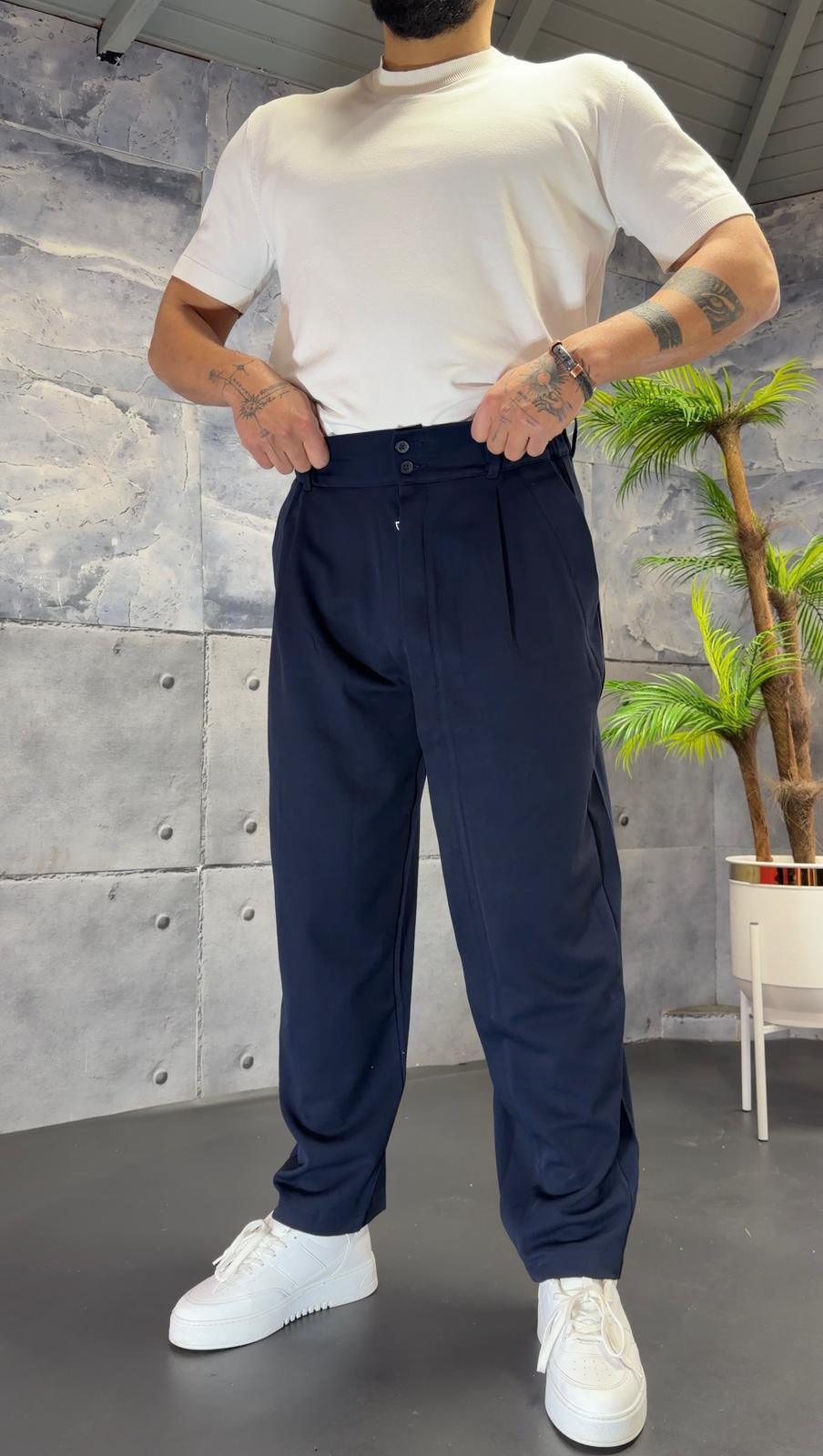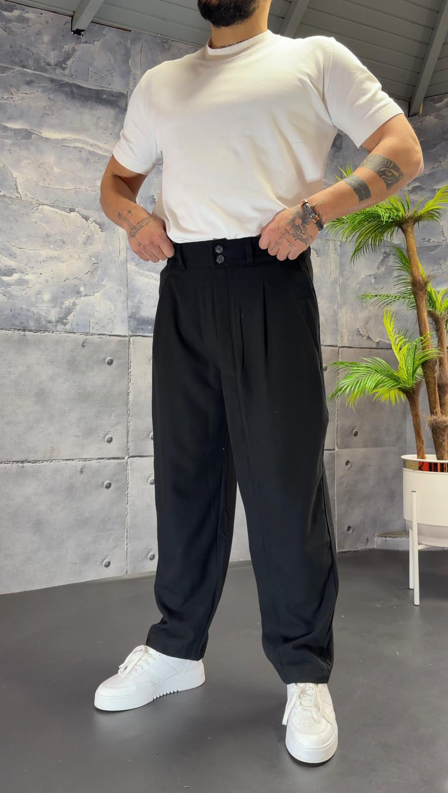 Çift Düğme Premium Tek Pile Detaylı Baggy Pantolon