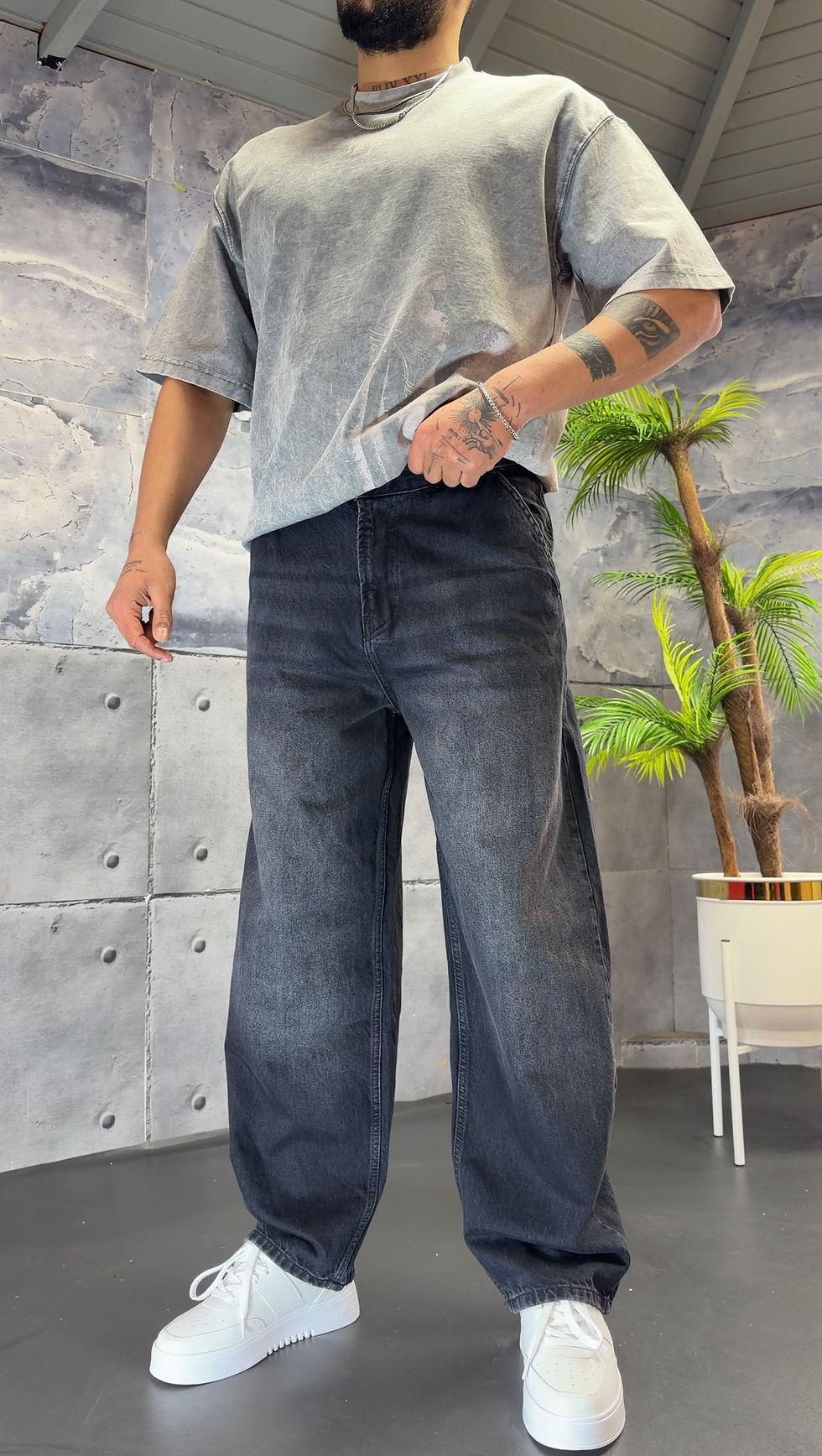 Ekstra Bol Premum Yıkamalı Baggy Pantolon